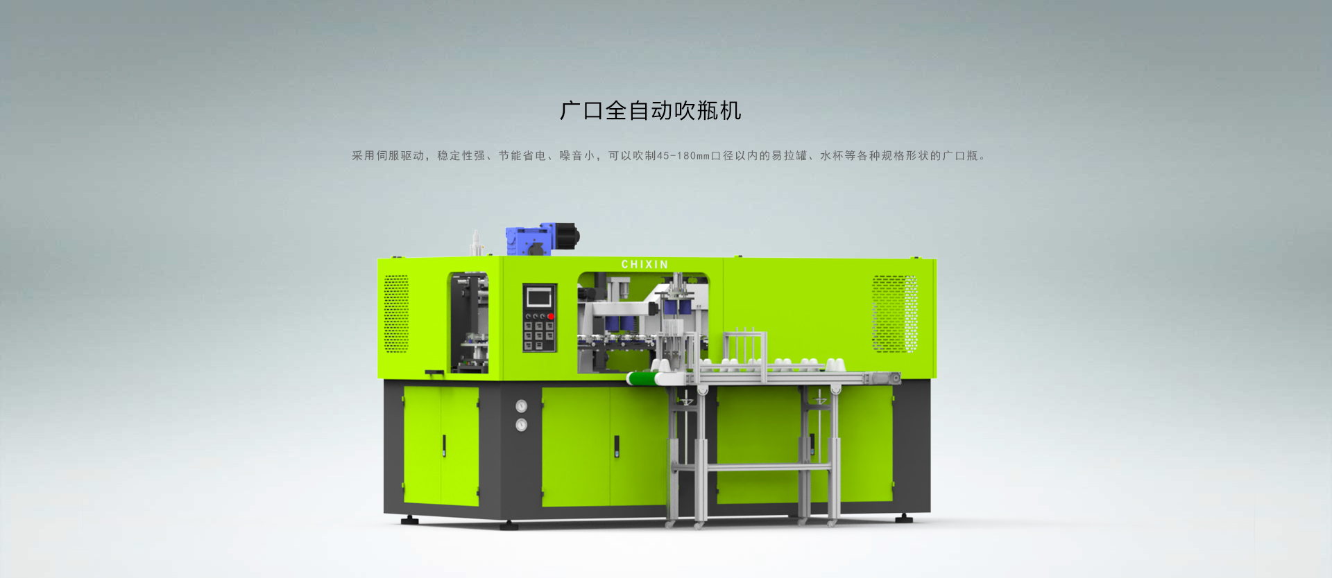 廣口一出二全自動吹瓶機主要用于PC、PS、PET廣口易拉罐吹瓶生產